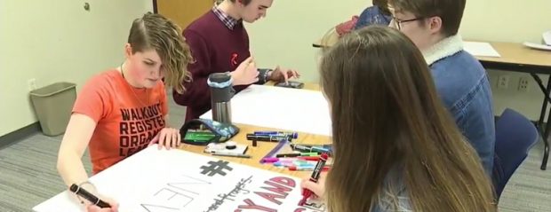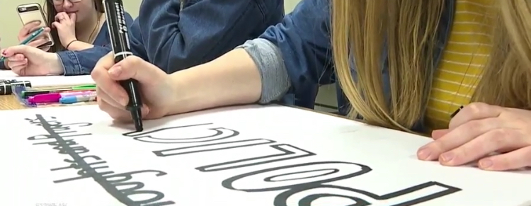 Rochester-area high school students making signs ahead of Saturday’s March For Our Lives in Washington D.C. Photo credit: 13WHAM.com |